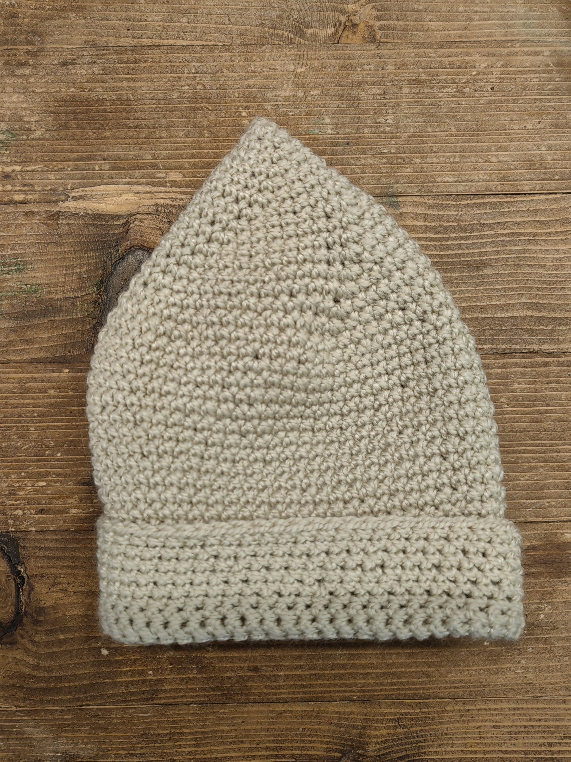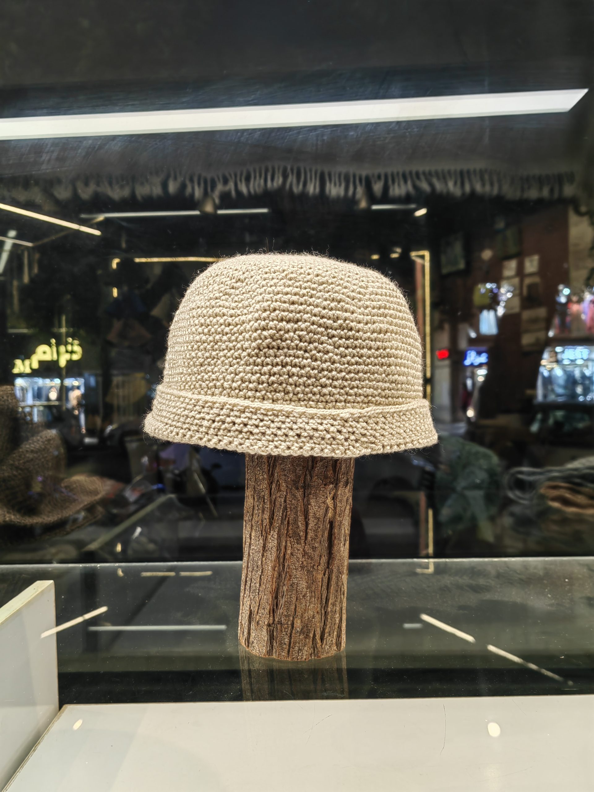 کلاه قلاب بافت کرم بافته شده با قلاب بزرگ .