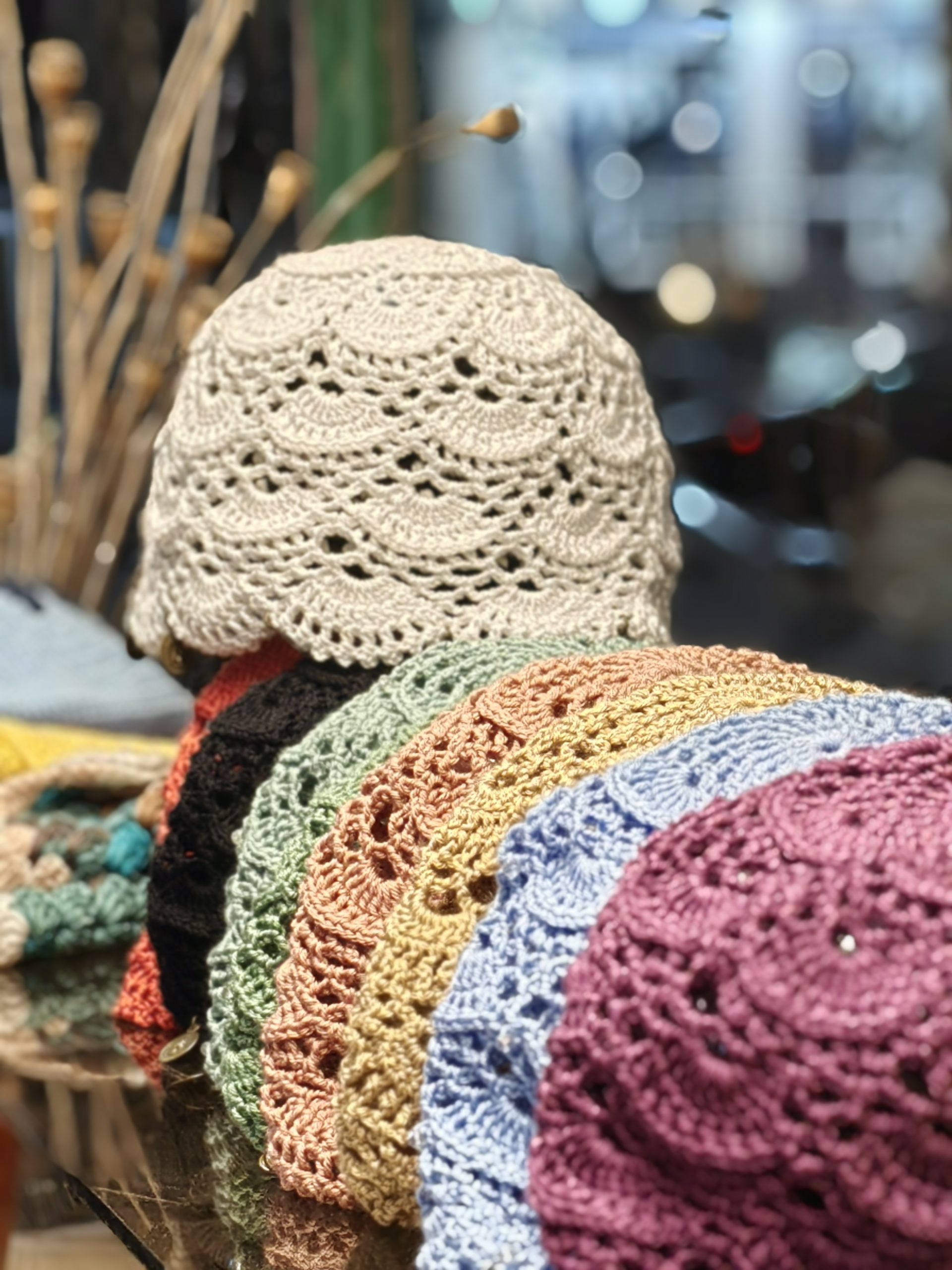 کلاه های طرح دار بافته شده از جنس نخ کتان هستن .
